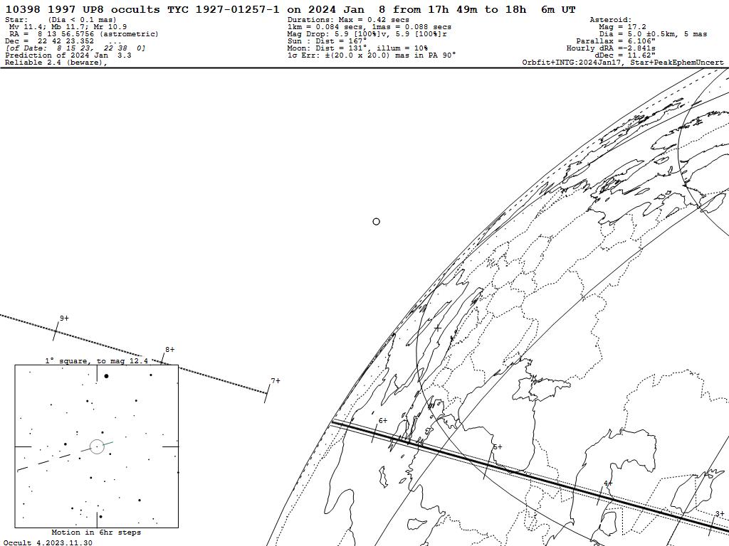 240108 : (10398) 1997 UP8 occults TYC 1927-01257-1