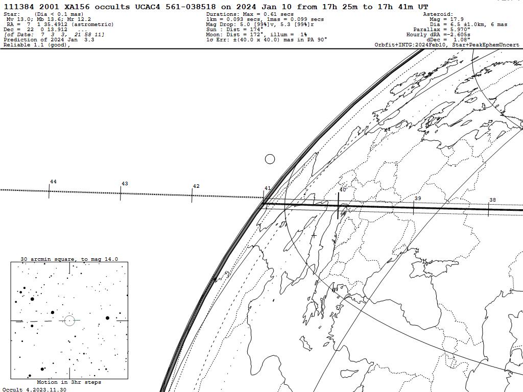 240110 : (111384) 2001 XA156 occults UCAC4 561-038518