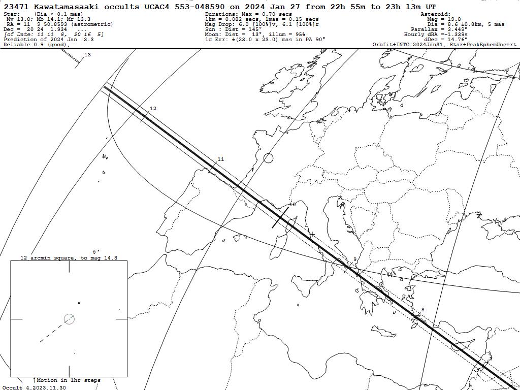 240127 : (23471) Kawatamasaaki occults UCAC4 553-048590